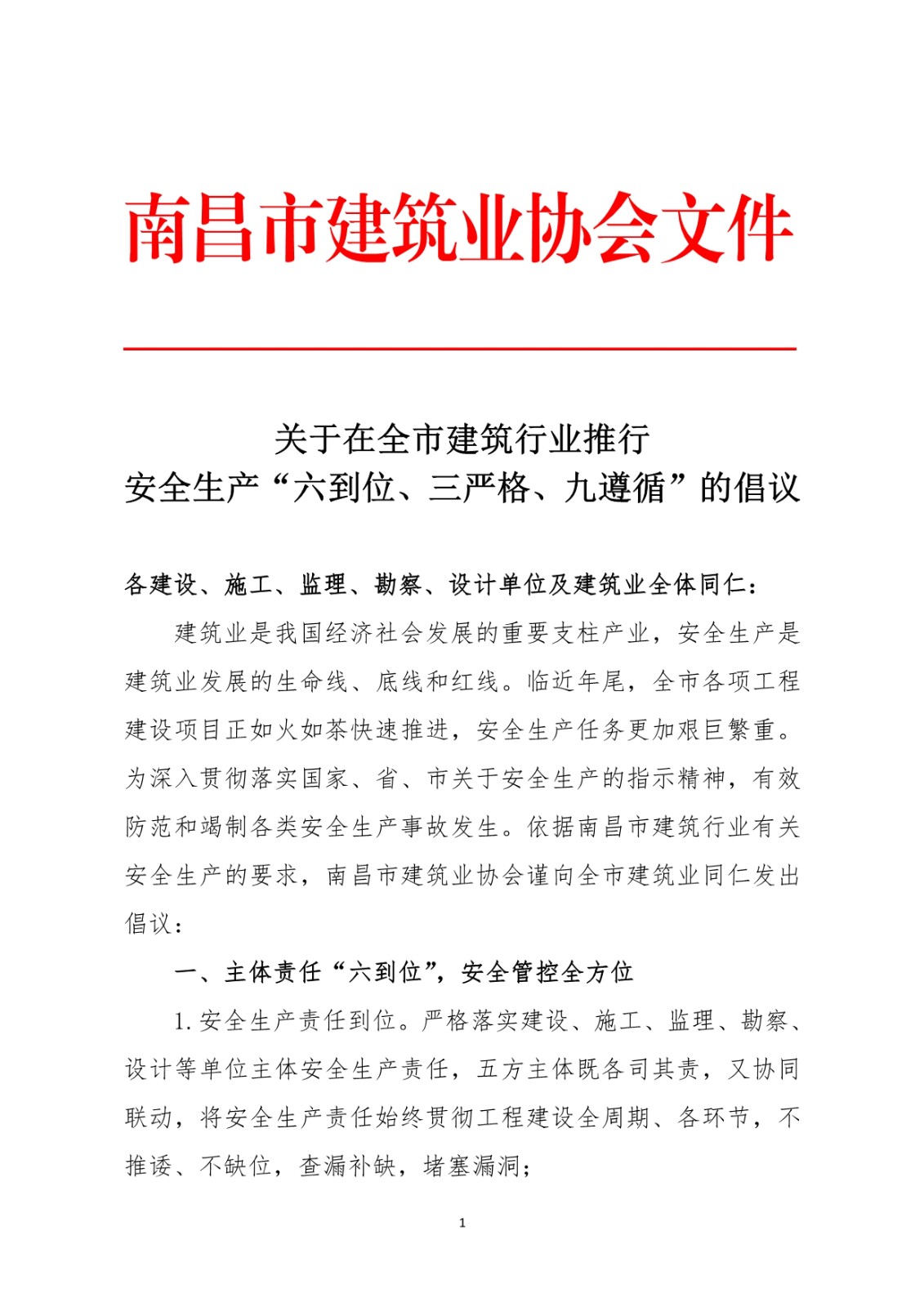 關(guān)于在全市建筑行業(yè)推行 安全生產(chǎn)“六到位、三嚴格、九遵循”的倡議